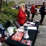 A la table où j’avais déposé quelques livres et brochures du CRAC Europe, j’ai accueilli beaucoup de personnes sensibilisées à la cruauté des arènes et le dialogue d’une manière générale s’est avéré riche en échanges et en émotions. Quelques badauds ont bien tenté de nous balancer les clichés d’usage en évoquant la souffrance humaine, ce à quoi nous avons répondu comme à l’accoutumée, que pour nous, défendre la Vie concernait aussi bien les humains que les animaux etc… J’en ai d’ailleurs profité pour présenter le tract du CRAC Europe dénonçant les écoles de tauromachie et j’ai demandé à un interlocuteur un peu trop braqué s’il trouvait normal qu’un enfant soit initié à la violence sur un animal et je lui ai expliqué que notre association luttait pour la protection de l’enfance. Le quidam s’est calmé.