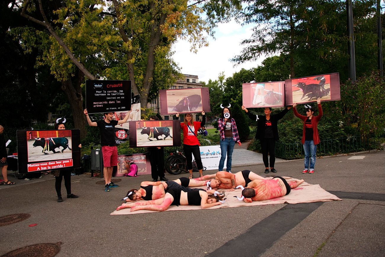 ACTION ANTI-CORRIDA DU 5 SEPTEMBRE A MULHOUSE ORGANISEE PAR ANIMALSACE ET CRAC EUROPE
