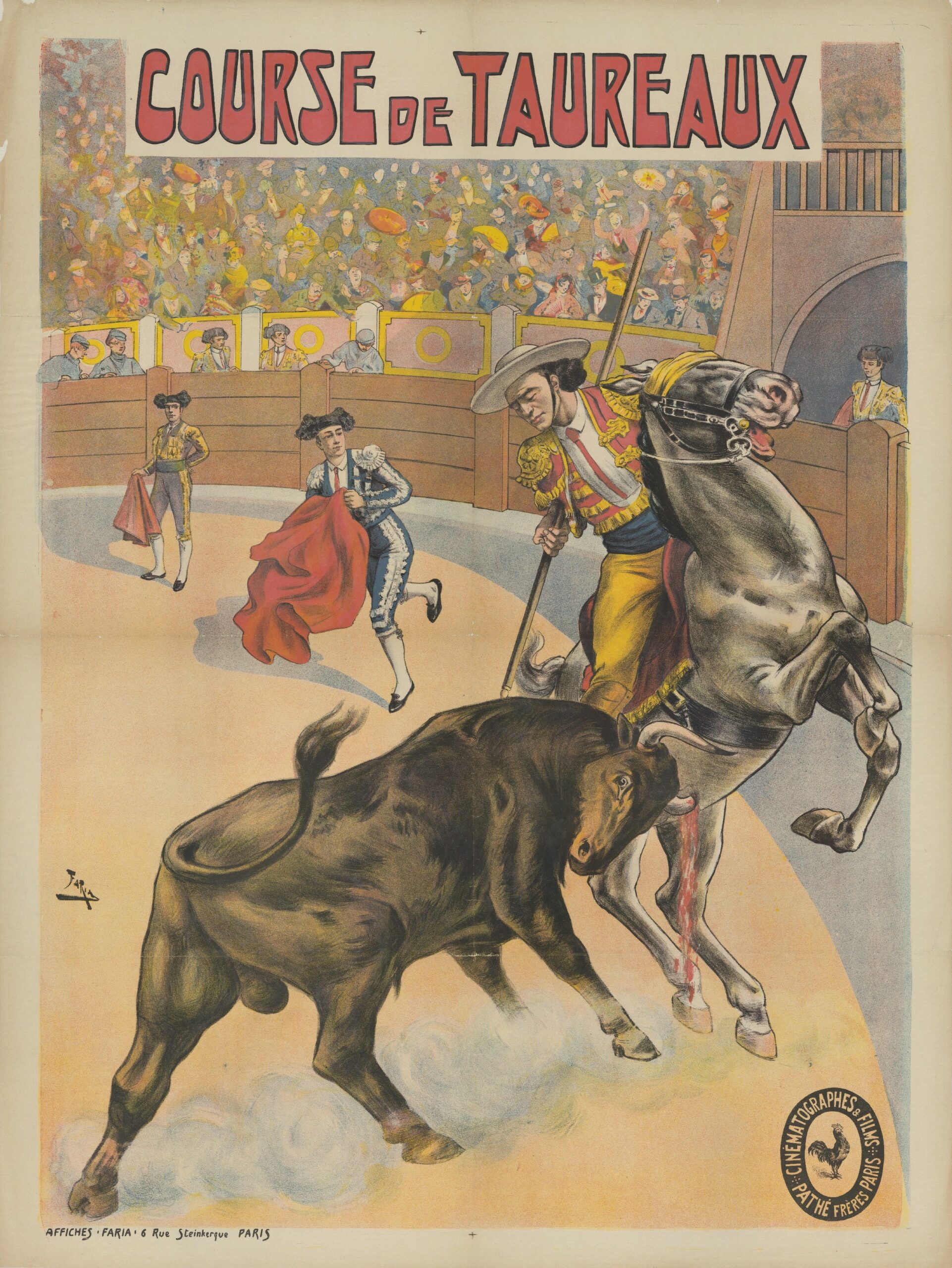 Sur le site de collection Delcampe, qui recense au jour de la rédaction de cet article 4272 documents anciens comme des cartes postales ou des affiches avec les seuls termes “course de taureaux”, quasi tous montrent des illustrations de corridas de toros.
